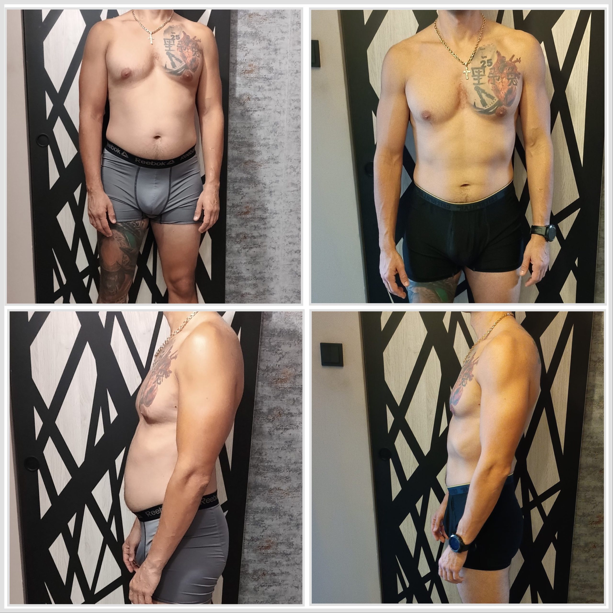 “Cenna uwaga, uświadomiło mnie to, dziękuję 😁. Z innej beczki to chciałbym podziękować za materiały, które Pan tworzy i te solo i te z Kacprem, bardzo mi to pomogło w zmianie sylwetki i bazując praktycznie tylko Pana materiałach dostępnych na YouTube wypracowałem swoją życiową na ten moment formę. Będąc wiecznie “grubasem” czułem się z tym źle i zmotywował mnie Pan do zmiany. Dziękuję bardzo za to co Pan robi i oby tak dalej 💪🏼💪🏼💪🏼 a tutaj zdjęcia po to aby delikatnie się pochwalić zastosowaniem wiedzy z kanału YouTube.“